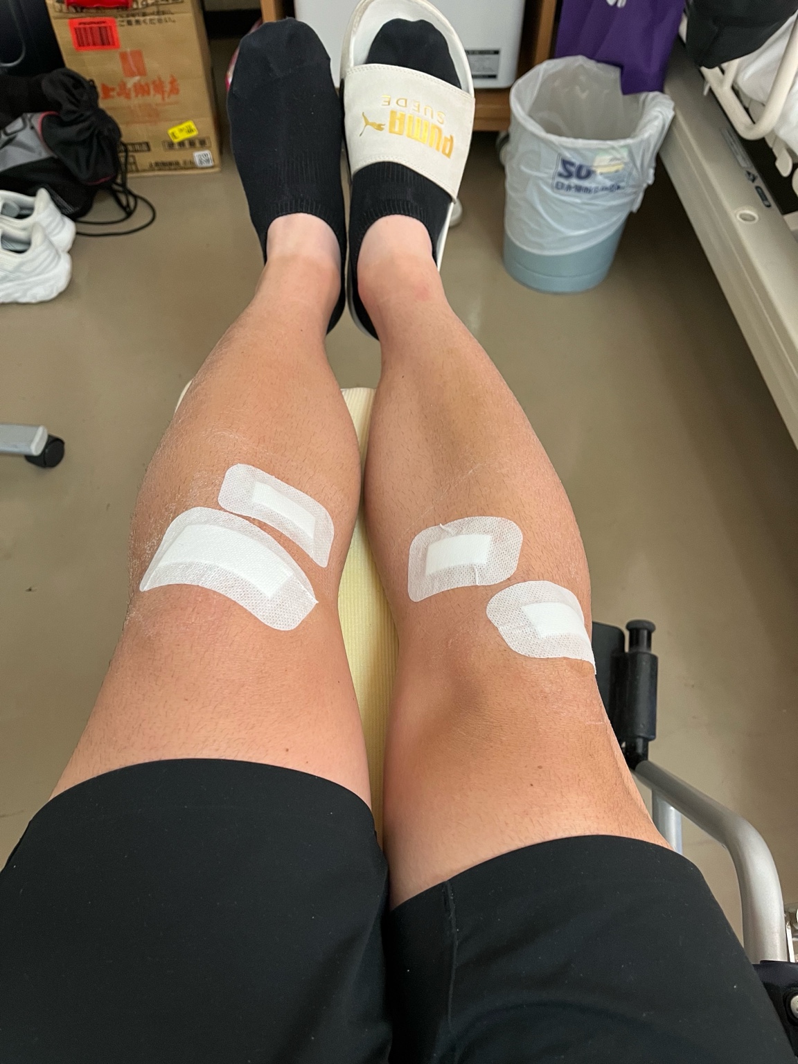 抜糸後の膝の様子(傷口保護テープあり)